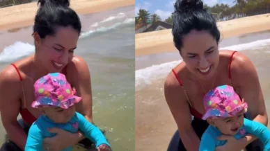No último sábado, dia 13, a influenciadora Graciele Lacerda, de 44 anos, compartilhou um momento muito especial em sua vida e na vida de sua filha, Clara, que está com apenas oito meses. A pequena teve a oportunidade de experimentar seu primeiro mergulho no mar, e as imagens desse dia encantador foram compartilhadas nas redes sociais, trazendo muitas risadas e sorrisos.