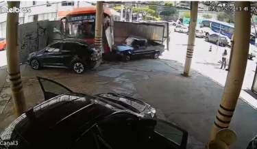 Imagens capturadas por câmeras de segurança mostraram o ônibus atravessando a via e rompendo um tapume que estava no local. As gravações são impactantes e revelam o momento em que o coletivo se desvia de sua rota original, causando alvoroço entre os passageiros. No final do vídeo, é possível ver os passageiros, visivelmente assustados, saindo do veículo em busca de segurança.